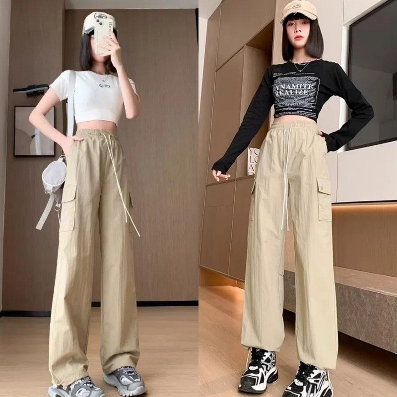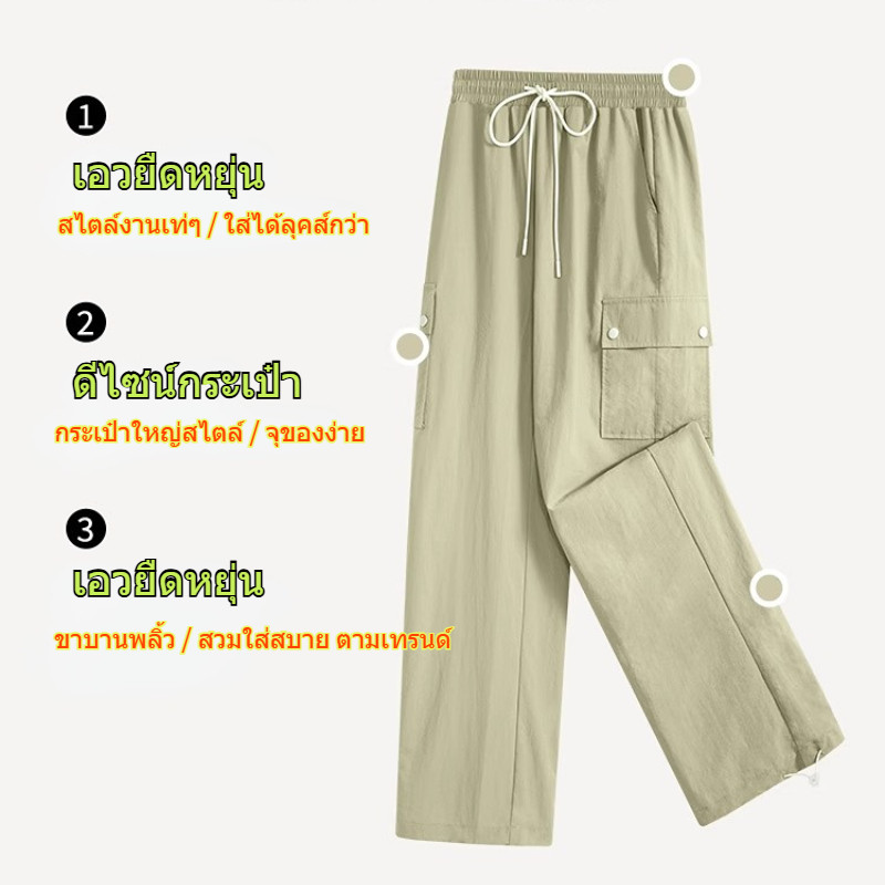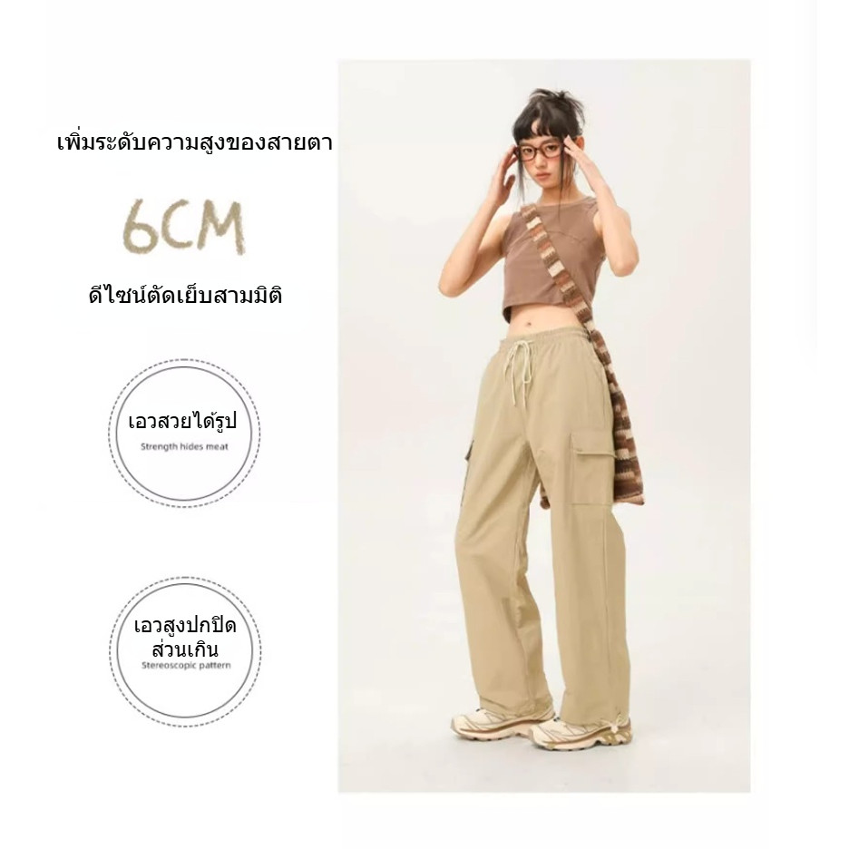 GENIO LAMODE กางเกงคาร์โก้สตรีแห้งเร็ว เอวสูงปรับได้ กระเป๋า3D Y2K ใส่กระชับระบายอากาศดี สูง6cm S-2XL