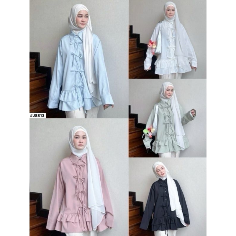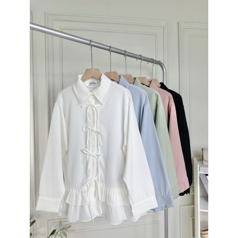 🎈 ON 8813 เสื้อเชิ้ต แต่งระบายสองชั้น ดีเทลกระดุมคู่ แต่งโบว์ สี่ ชั้น แมสง่าย งานมาใหม่ สไตล์เกาหลีเกาใจ