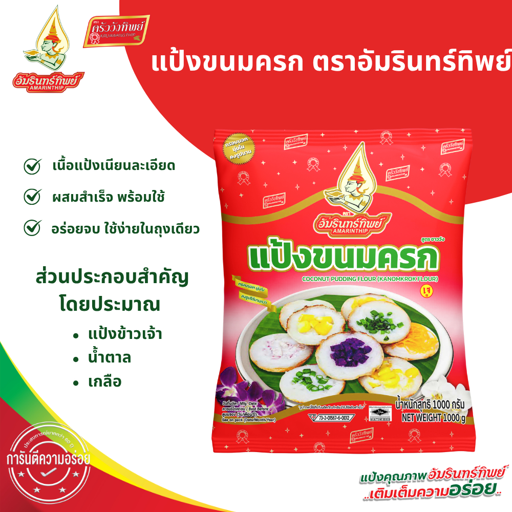 แป้งขนมครก ตราอัมรินทร์ทิพย์ ขนาด 1000 กรัม (Kanomkrok flour) Amarinthip Brand
