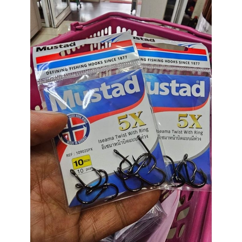 MUSTAD HOOK🐟ความแข็ง ระดับ 5X👍ตัวเบ็ดมาสตาด ซองฟ้า มีห่วง อิเซม่า หน้าบิด👍10902SPX