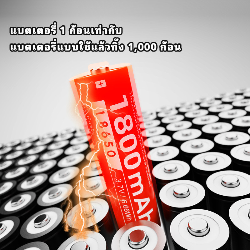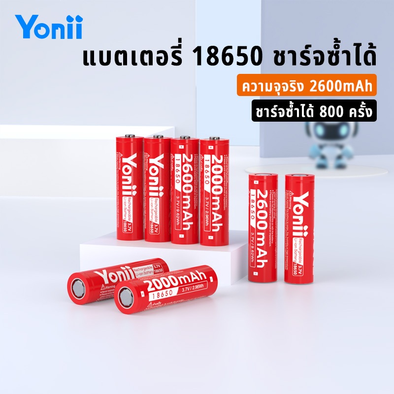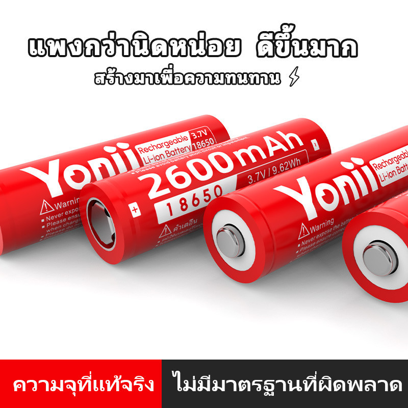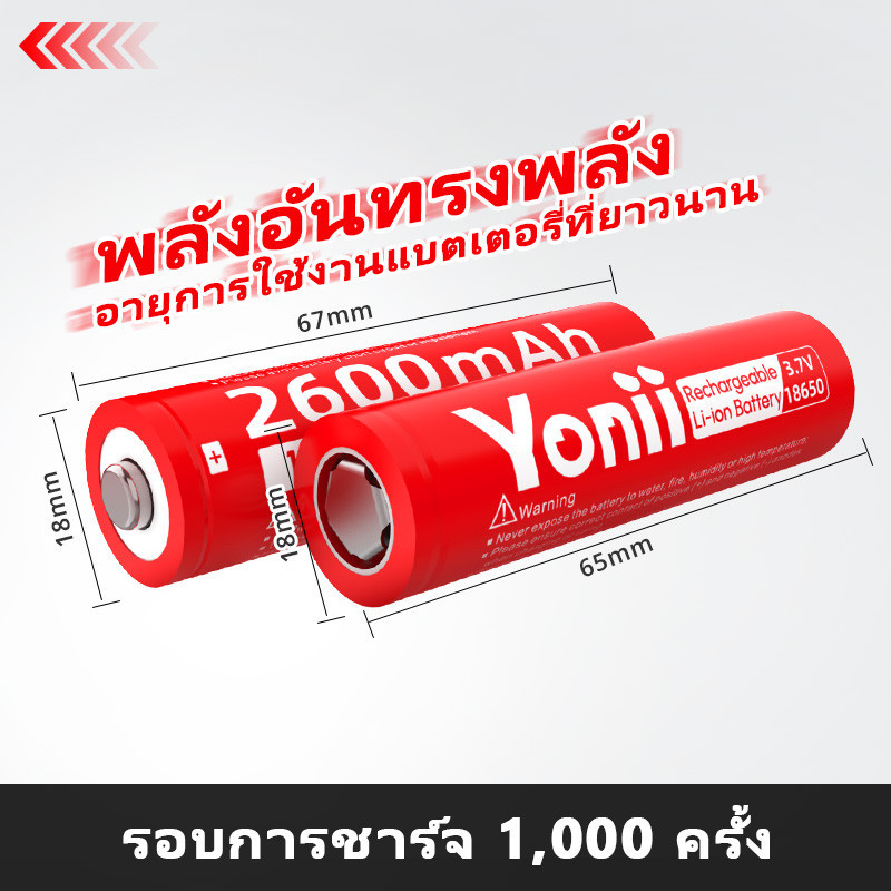 Yonii 3.7V แบตเตอรี่ลิเธียม 18650 ถ่านชาร์จคุณภาพสูง ถ่านแดงยาวชาร์จได้ (x4 ชิ้น) 2600mah (for พัดลมพกพา)ความสูง 67/65