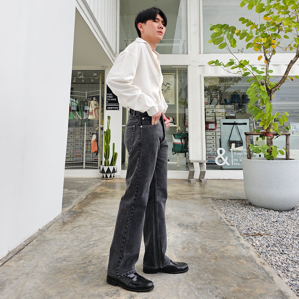 Golden Zebra Jeans กางเกงยีนส์ชายแฟชั่นขากระบอกใหญ่ผ้าไม่ยืดสีดำเทา ผ้าซุปเปอร์แบล็คฟอกนิ่ม #219BK