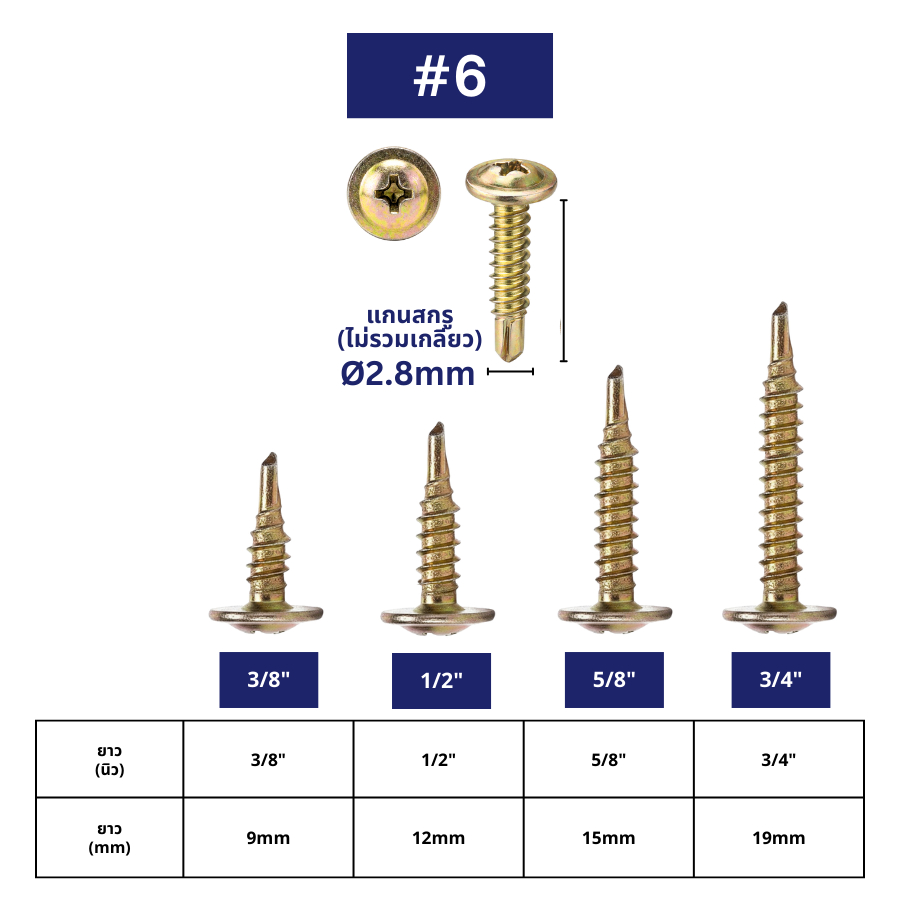 IEPERNG สกรูปลายสว่าน หัวนูน(PH) #6 ถุงละ100ตัว ยึดสังกระสี ป้าย ยิปซั่มแทนรีเวท น็อตหัวนูน
