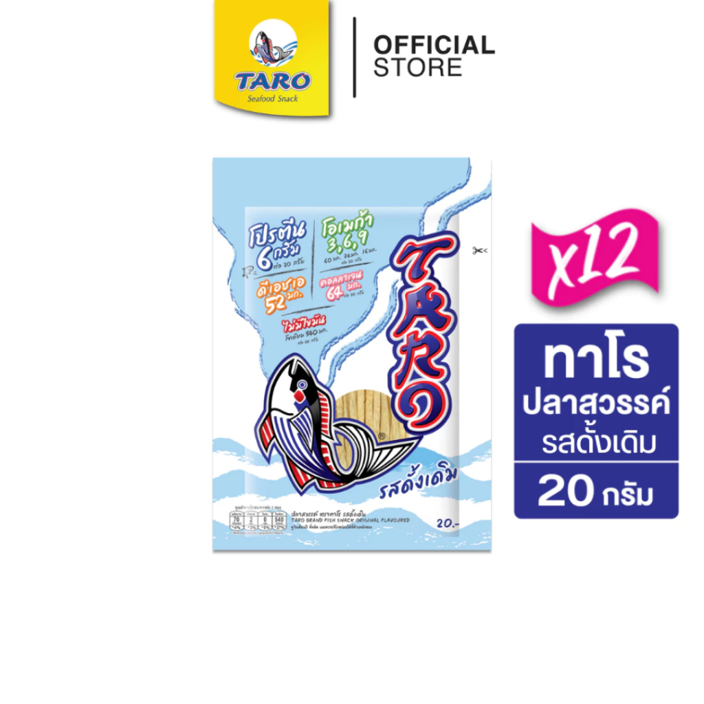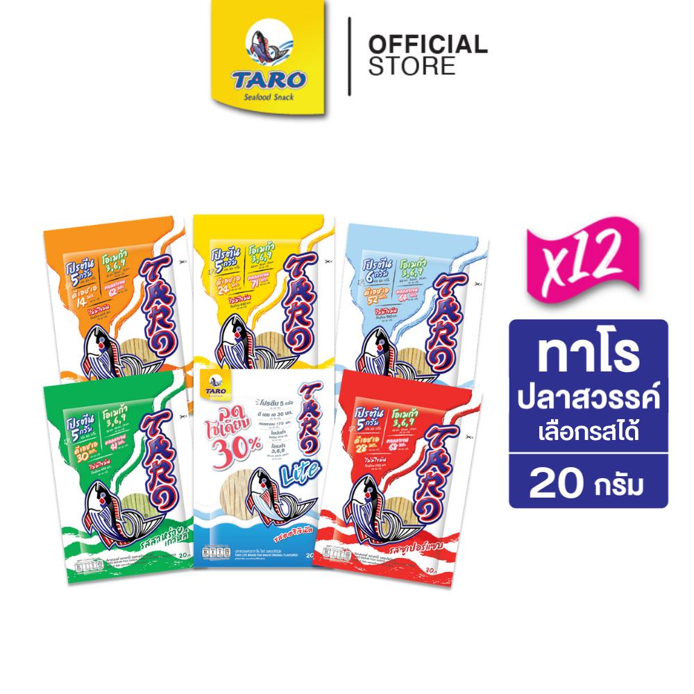 [แพ็ค 12] TARO ทาโร ขนมปลาเส้น ขนาด 20 บาท 20ก. (เลือกรสได้)