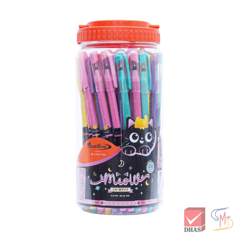 Quantum ควันตั้ม ปากกา ปากกาน้ำเงิน ปากกาโหล ปากกาลูกลื่น สเก็ต แฟนซีเหมียวเหมียว น้ำเงิน 0.6 จำนวน 50 ด้าม