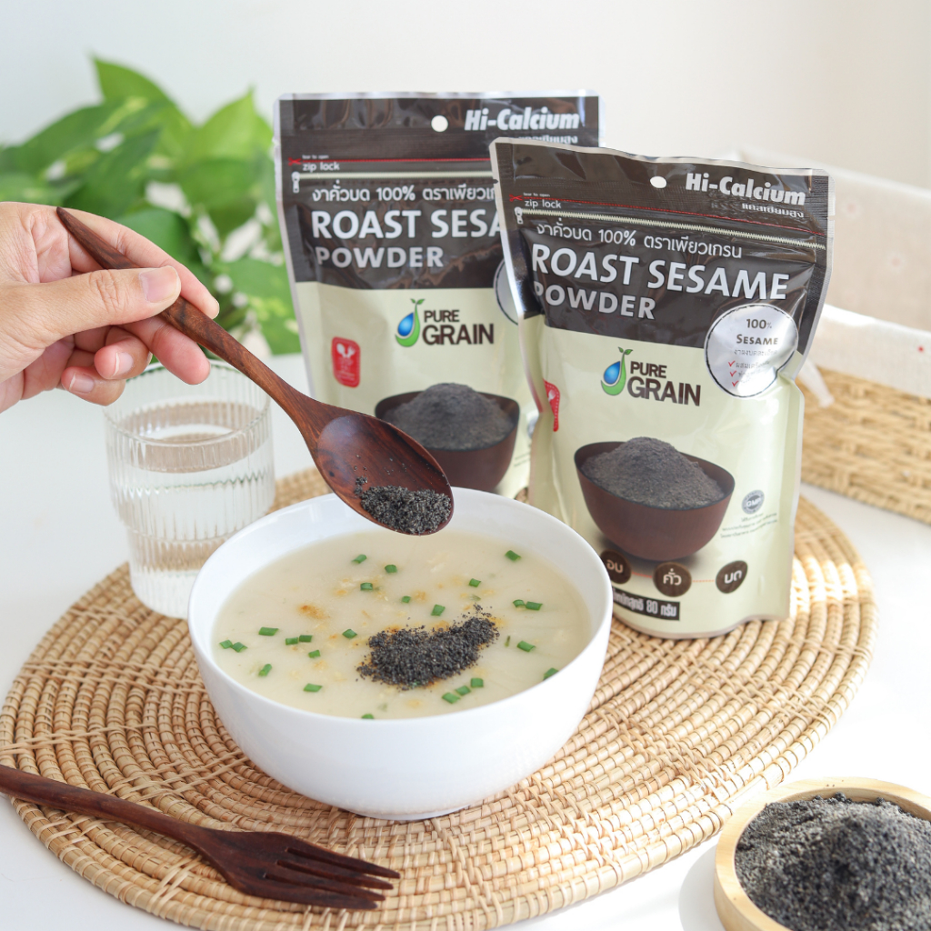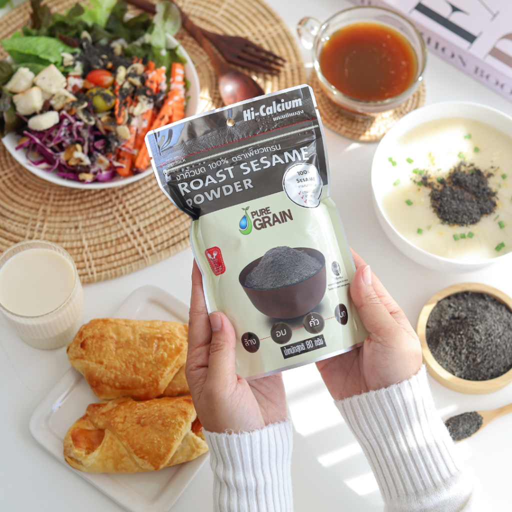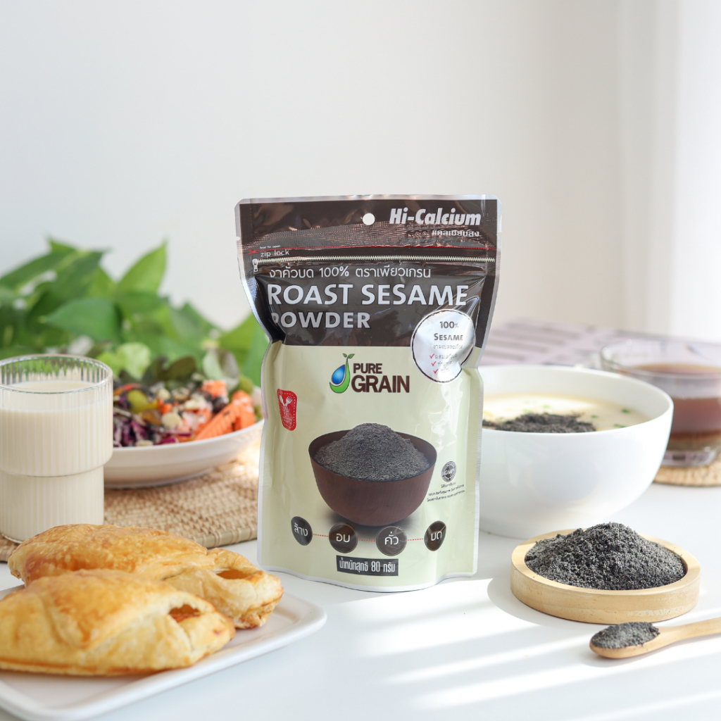 เพียวเกรน งาดำคั่วบด100% (ขนาด 80 กรัม)