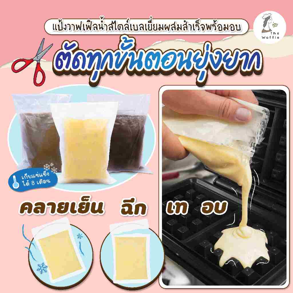 The Waffle: แป้งทำขนมวาฟเฟิลน้ำสไตล์บรัสเซลส์ แพ็ค 4 ซอง (Frozen Waffle Batter)