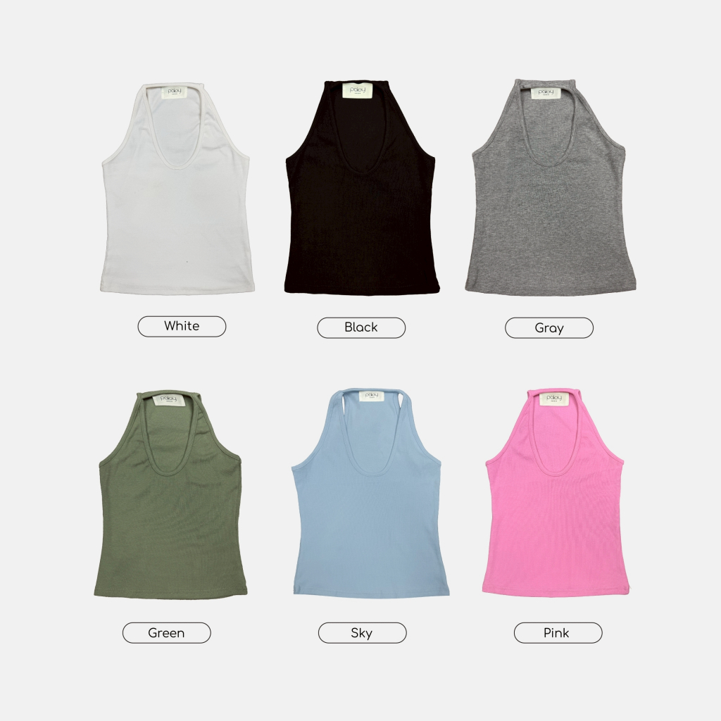 Paloy - PL9333 เสื้อกล้ามสายเดี่ยวคล้องคอ สีพื้น