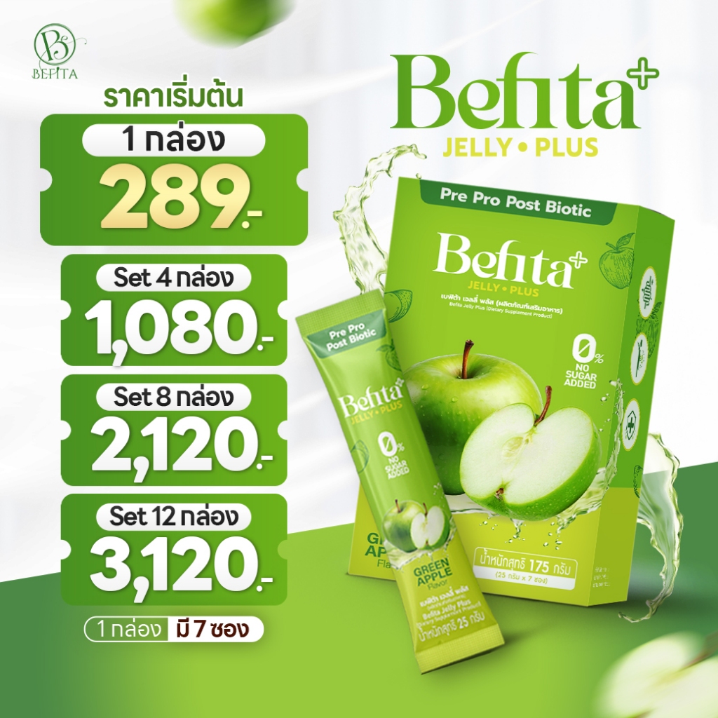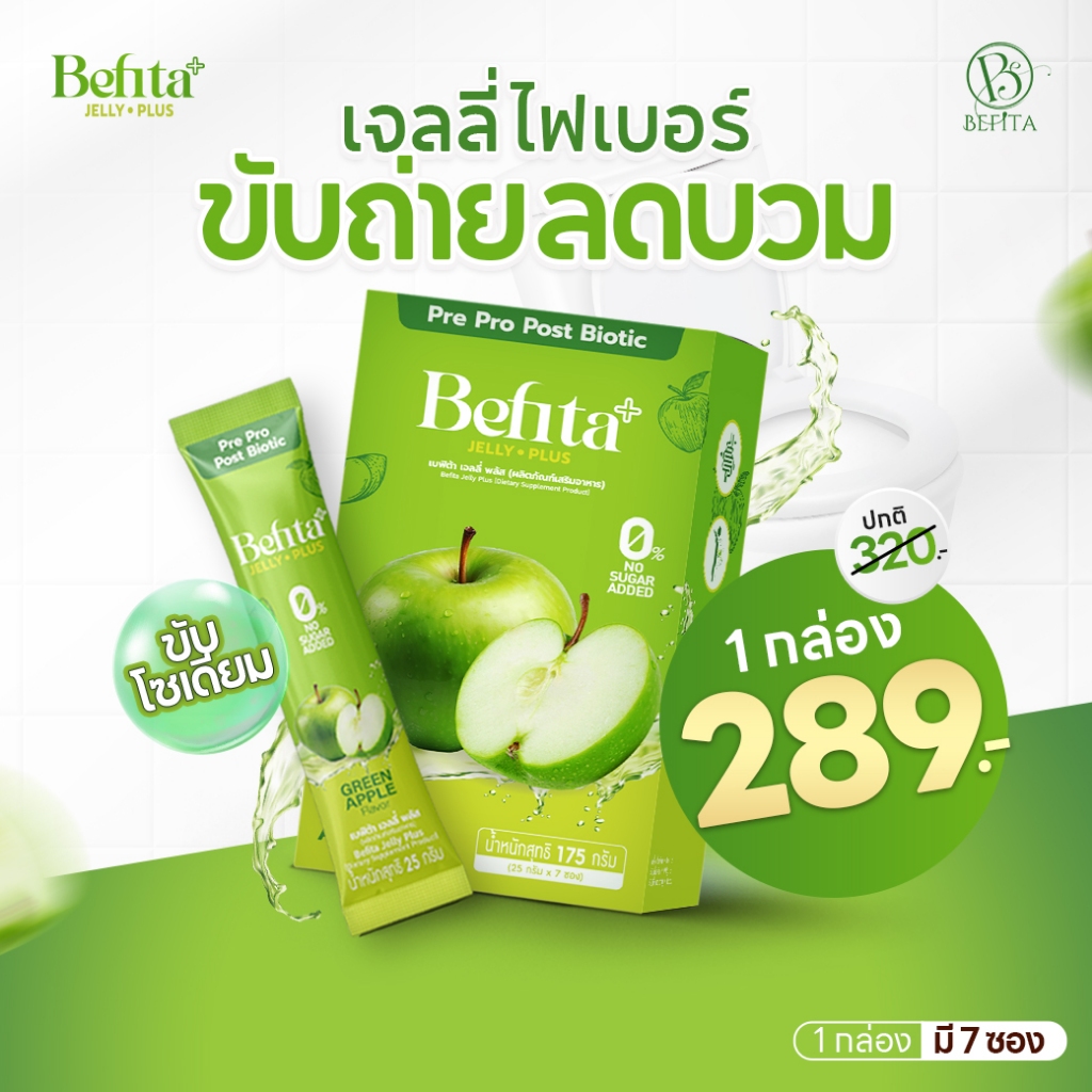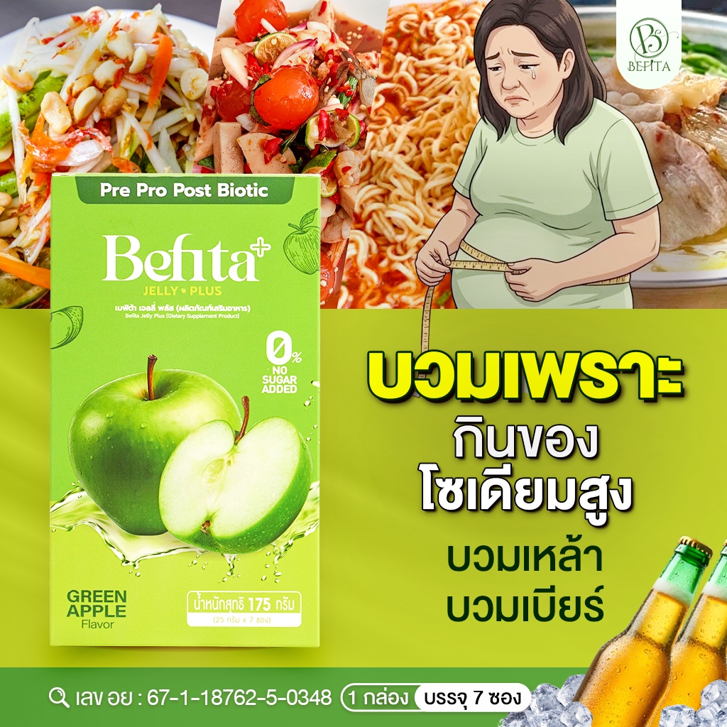 [เจลลี่ลดบวม ขับโซเดียม] Befita Jelly Plus เจลลี่แอปเปิ้ลเขียว ขับน้ำ ลดบวมเค็ม ช่วยขับถ่าย (1 กล่อง 7 ซอง)