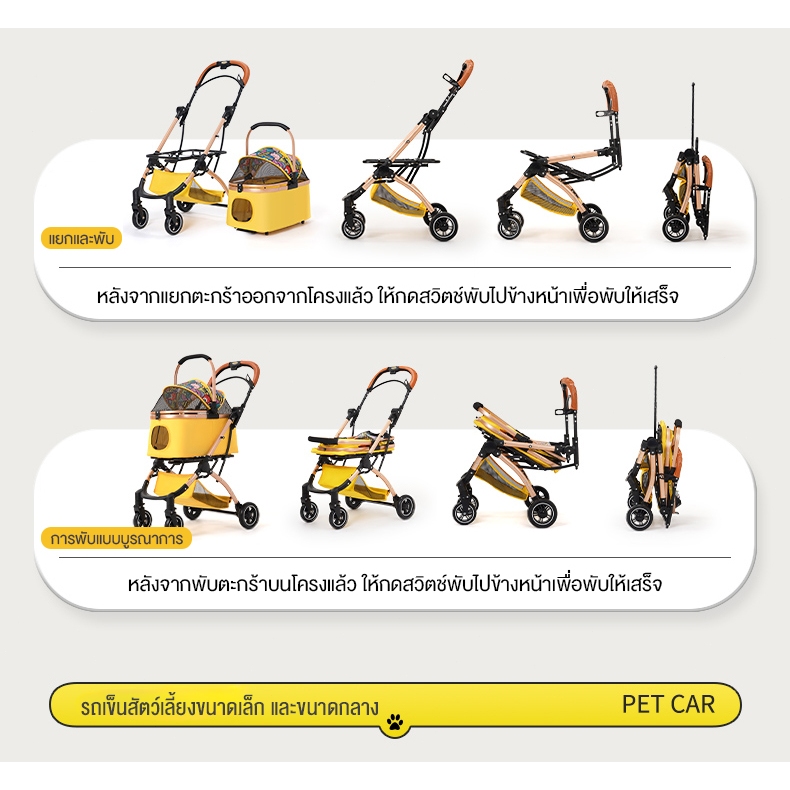 รถเข็นสุนัข คุณภาพสูง วัสดุเหล็กกล้าคาร์บอน ความจุแบริ่ง40KGถอดออกได้ พับได้ รถเข็นสุนัขคันใหญ่ รถเข็นแมว รถเข็นแมว2ชั้น