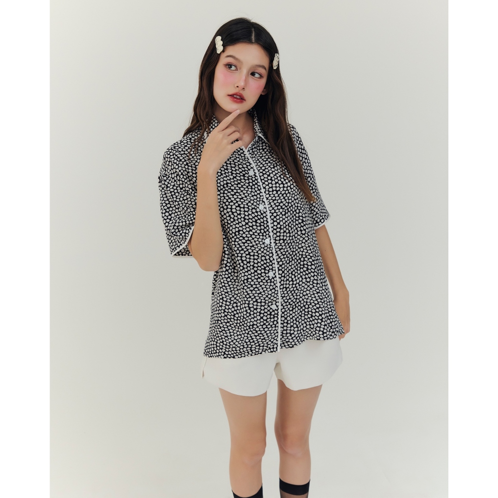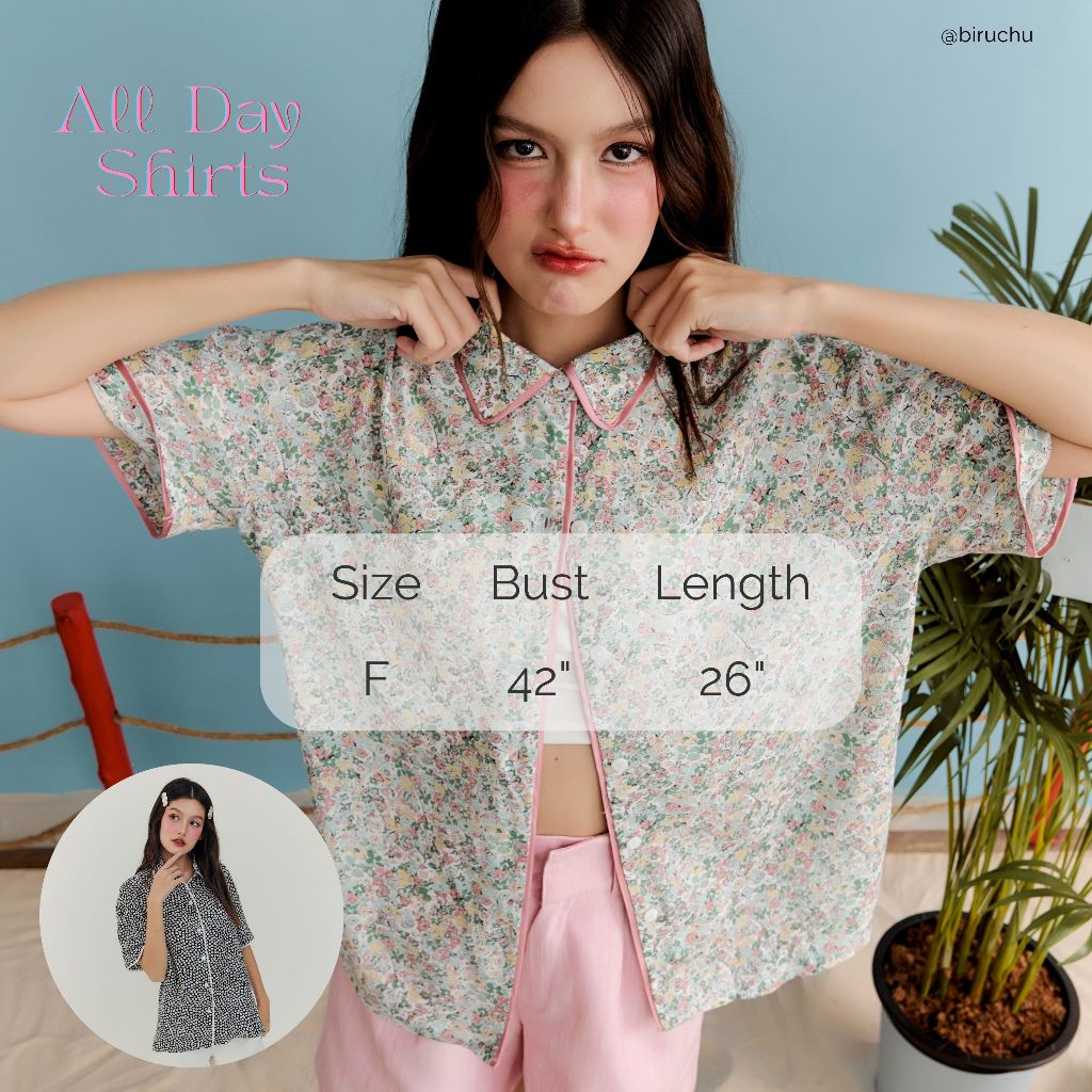 BIRUCHU ALL DAY SHIRTS เสื้อเชิ้ตปกนิ่ม ดีเทลแต่งขอบกุ๊นซาติน ผ้าใส่สบาย รีดง่าย