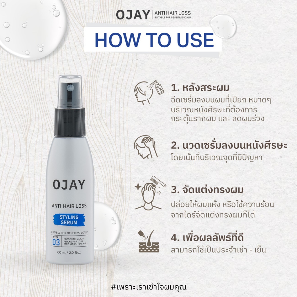 [SET D] OJAY Anti Hair Loss แชมพู+เซรั่มลดผมร่วง (สูตร styling)