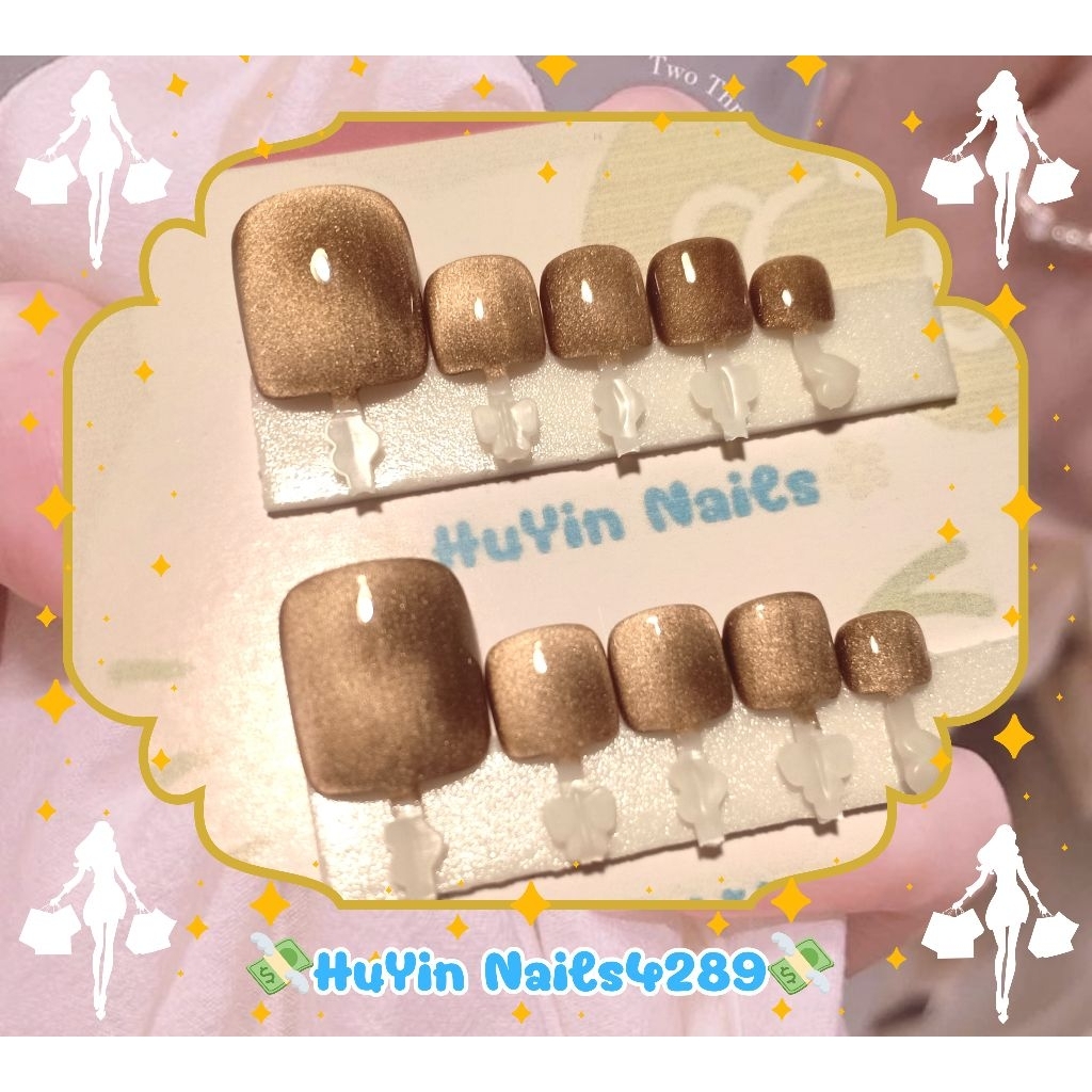 เล็บปลอม เล็บเท้า เล็บเจลแท้ 100% เล็บปลอมสำเร็จรูป ☕ สีน้ำตาล สีแคทอาย SL5 ☕ แถมกาว+ตะไบ