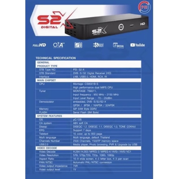 กล่อง S2X. กล่องจานดาวเทียม PSI. S2X สั่งซื้อได้ไม่จำกัดจำนวน..