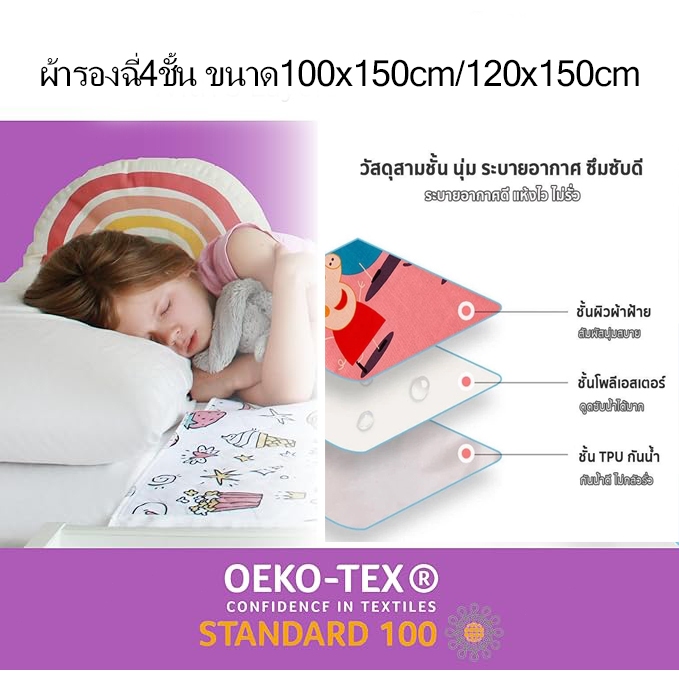 ผ้ารองฉี่4ชั้น ขนาด150*200cm สำหรับผู้ใหญ่ ผู้สูงอายุ ผู้ป่วยติดเตียง ผู้หญิงปรำจำเดือน