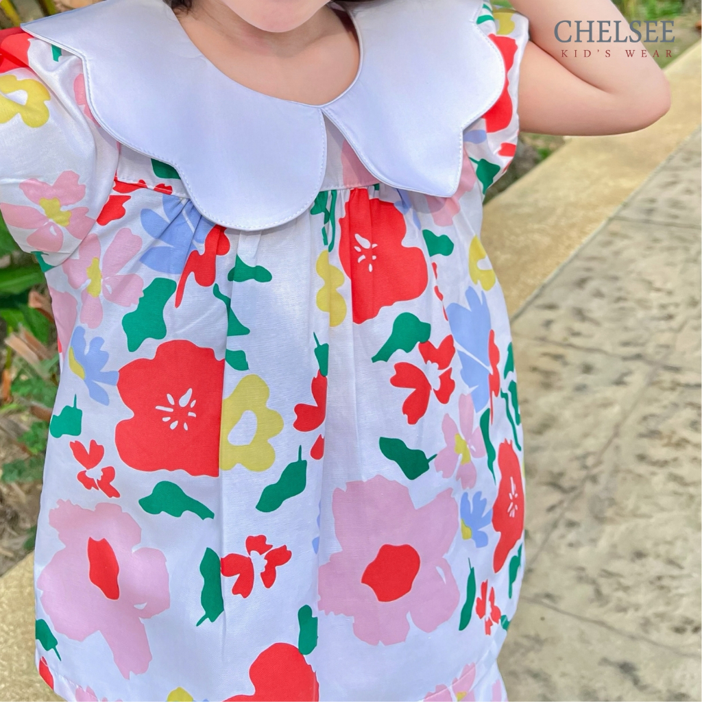 Chelsee เสื้อคอกลม ปกหยัก ลายดอกไม้ แขนตุ๊กตา ผ้า 100%Cotton อายุ 1.5-10ปี เด็กผู้หญิง เสื้อผ้าเด็กโต รุ่น 238158