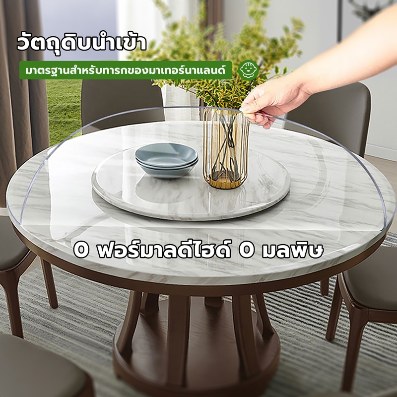 ผ้าปูโต๊ะทรงกลม PVC ของทนน้ํามันทนน้ําร้อนลวกและล้างฟรีวงกลมโปร่งใสเสื่อโต๊ะรับประทานอาหารครัวเรือนผ้า