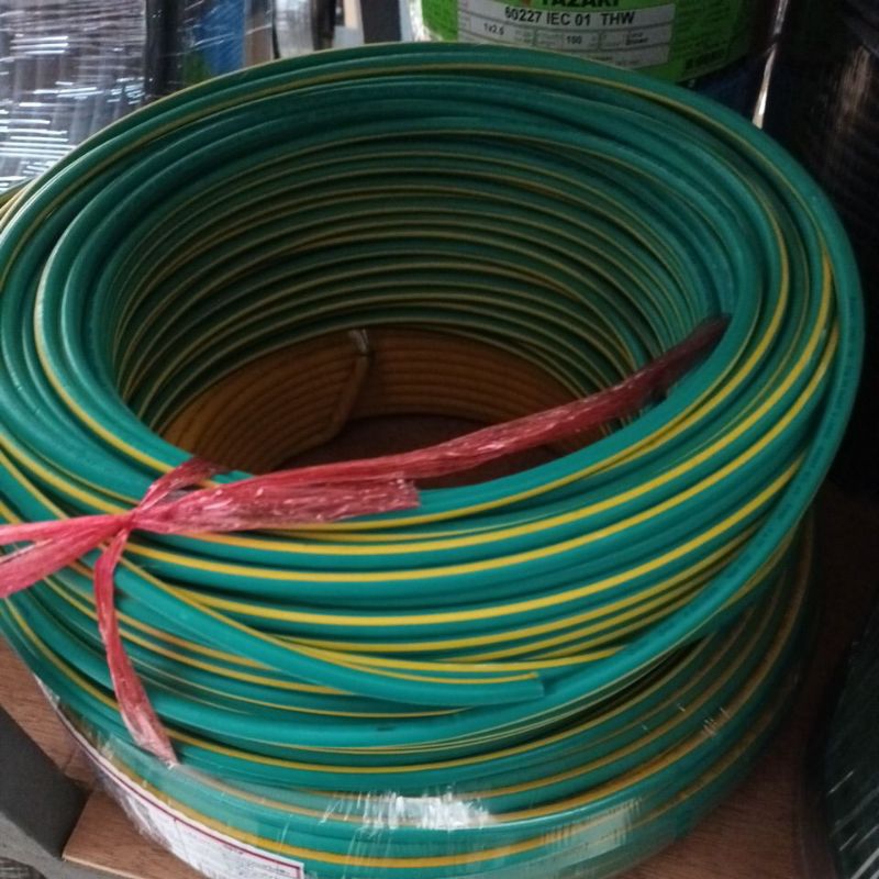 สายไฟ THW 1x10 IEC01 สายกราวด์ ทองแดง เดี่ยว เบอร์10 สีเขียว เขียวคาดเหลือง สายดิน มอก.