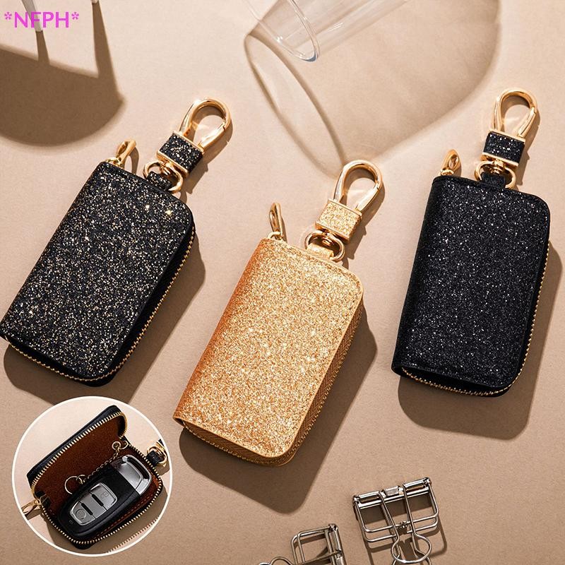 NFPH> Shiny Key Pouch Zipper Key Holder Organizer กระเป๋ากุญแจรถพวงกุญแจกระเป๋าสตางค์แฟชั่น Simple Key Case กระเป๋ากุญแจรถปกป้องใหม่