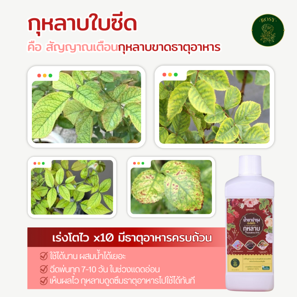 Rosy (บำรุงกุหลาบชนิดผสมน้ำ) เข้มข้น เร่งยอด เร่งการออกดอก ดอกดก ต้นใหญ่แข็งแรง