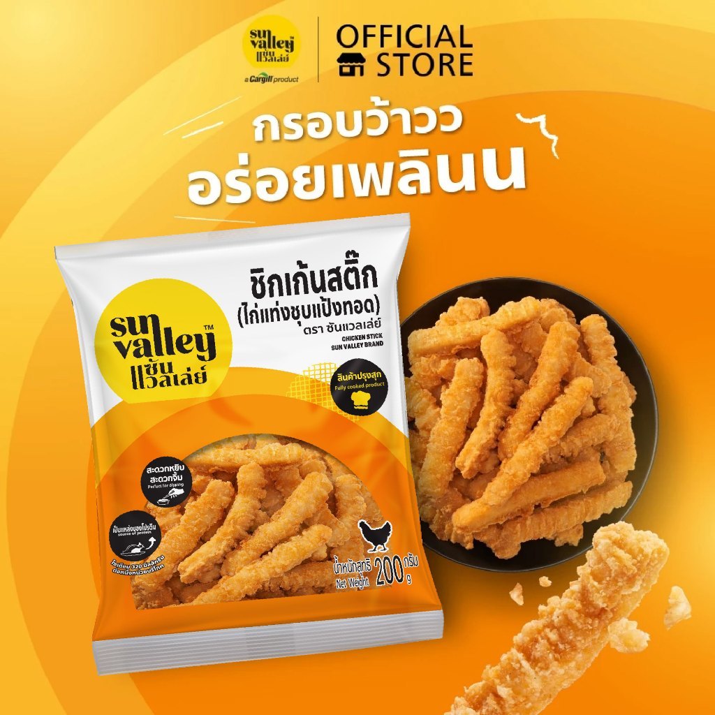 ซันแวลเล่ย์ ชิกเก้นสติ๊ก(ไก่แท่งชุบแป้งทอด) (Chicken Stick Sun Valley Brand) NEW 200 G.