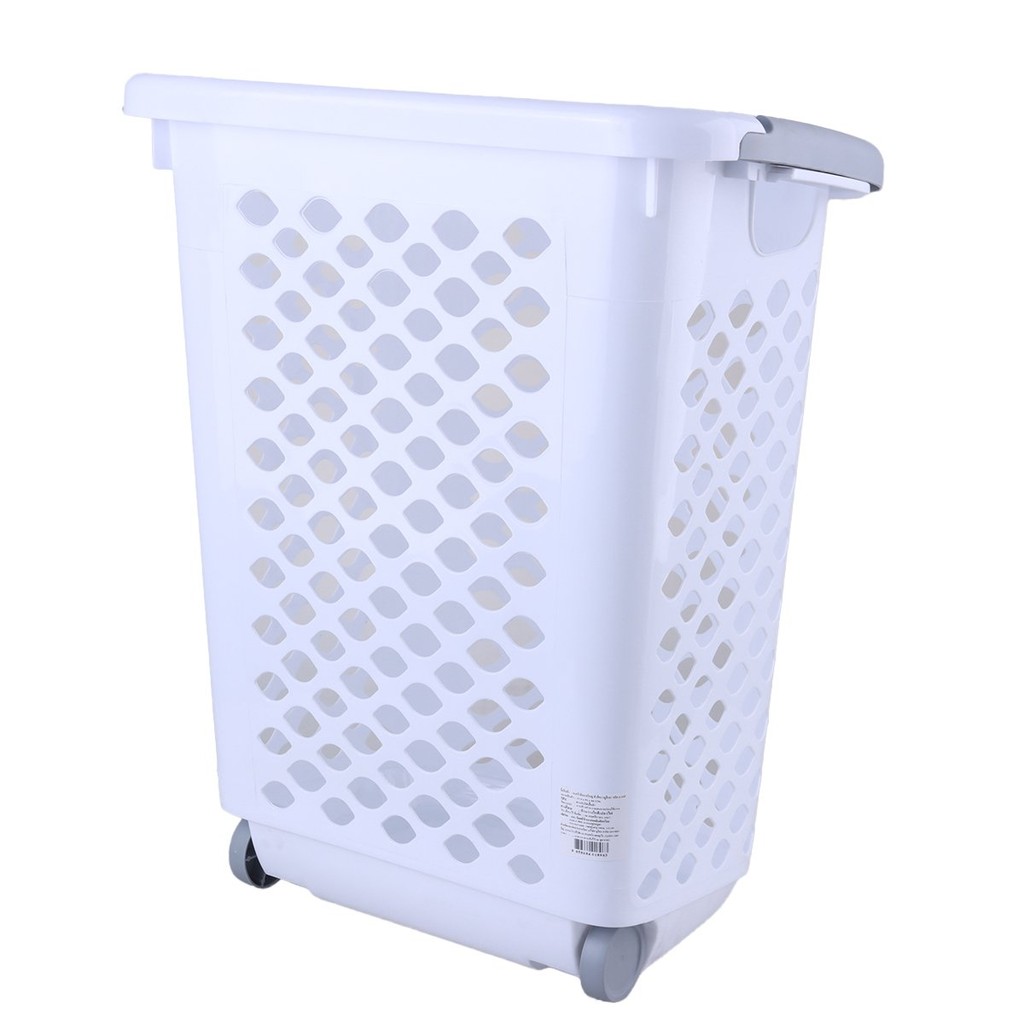 DECOS ตะกร้าพลาสติกล้อลาก รุ่น 61468 สีขาว หูเทา |BAI|