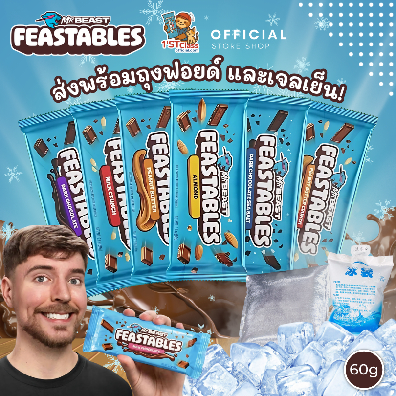 [พร้อมส่งของแท้มีอย.ไทย]🍫MR.BEAST FEASTABLES ช็อกโกแลต 60g มี4รสชาติ จัดส่งพร้อมเจลเย็น By 1'STClass