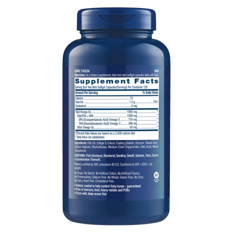 GNC Triple Strength Fish Oil Mini 240 Softgels 1000mg น้ำมันปลา มินิซอฟเจล EPA ดีเอชเอ โอเมก้า 3