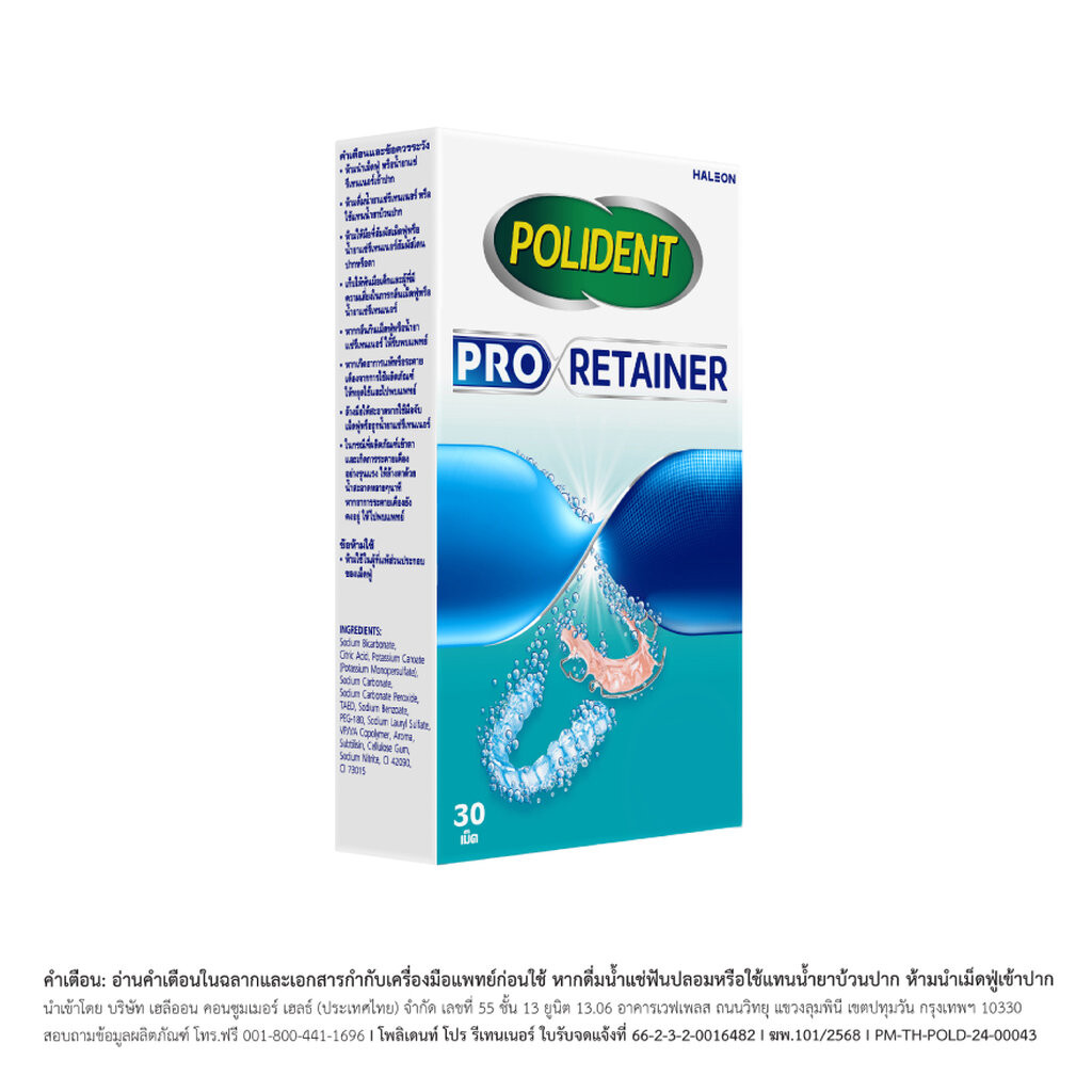 Polident โพลิเดนท์ เม็ดฟู่ ทำความสะอาดรีเทนเนอร์ โปร รีเทนเนอร์ 30 เม็ด
