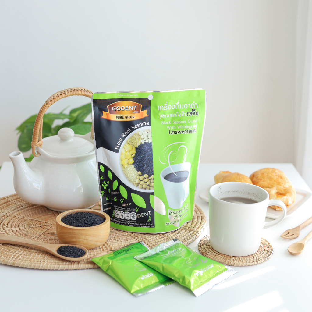 โกเด้นท์ เครื่องดื่มงาดำปรุงสำเร็จ สูตรผสมธัญพืช รสจืด ไม่มีน้ำตาล (ขนาด 125 กรัม) จำนวน 5ซอง/ถุง