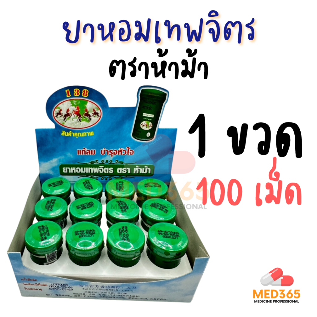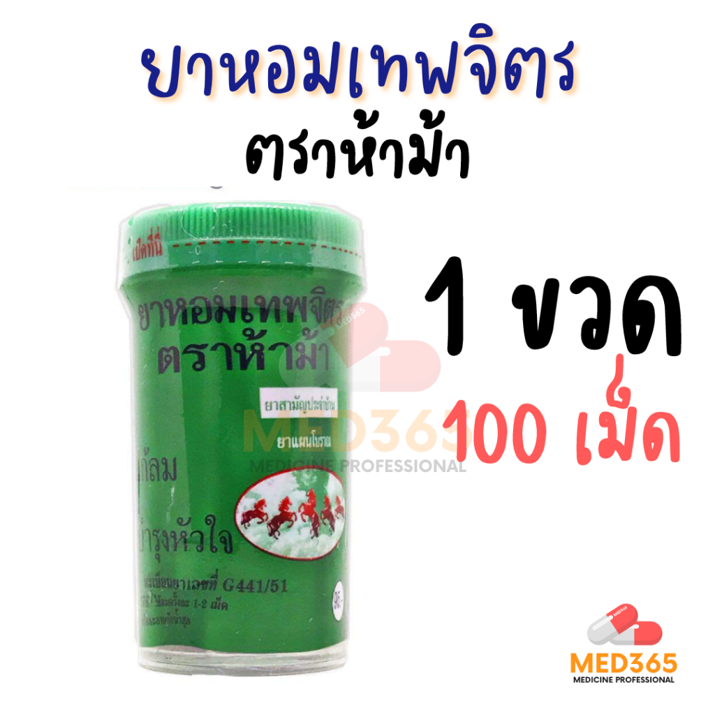 ยาหอมเทพจิตร ตราห้าม้า (1 ขวดใหญ่) ชนิดเม็ด เม็ดอม