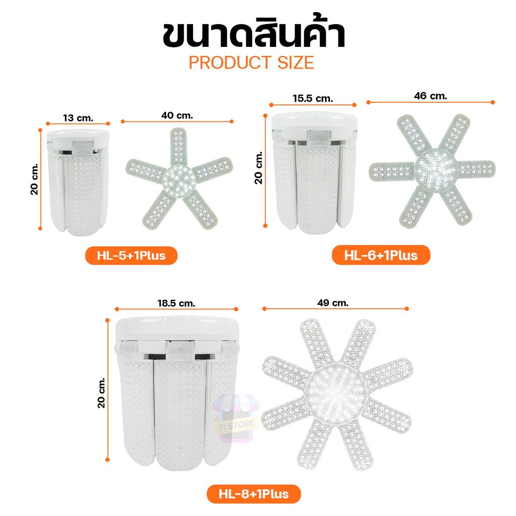 หลอดไฟพับ หลอดไฟใบพัด LED BULB มอก. แท้ HLX หลอดไฟเพชร พับเก็บได้ 480W/380W/280W สว่างมาก ประหยัดไฟ