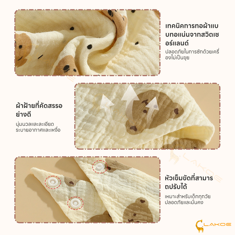 LAKOE ผ้ากันเปื้อนเด็ก ผ้าซับน้ำลาย วัสดุอ่อนนุ่ม ผ้ากันเปื้อนน้ำลาย ของใช้ทารก การดูดซึมน้ำที่ดี