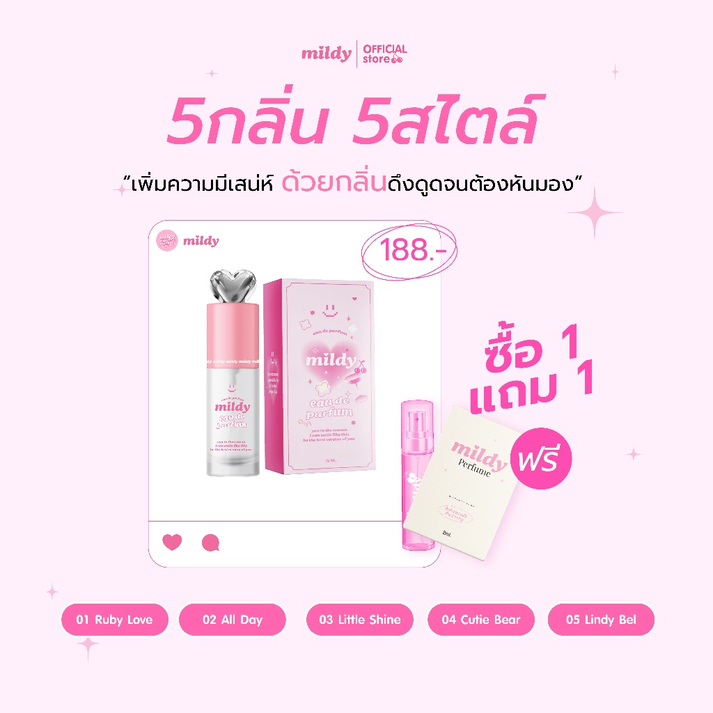 Mildy Perfume น้ำหอมมายดี้ 5 กลิ่นสำหรับสาวติดแกลม ขนาด15ml. ฉีดเดียวหอมนาน