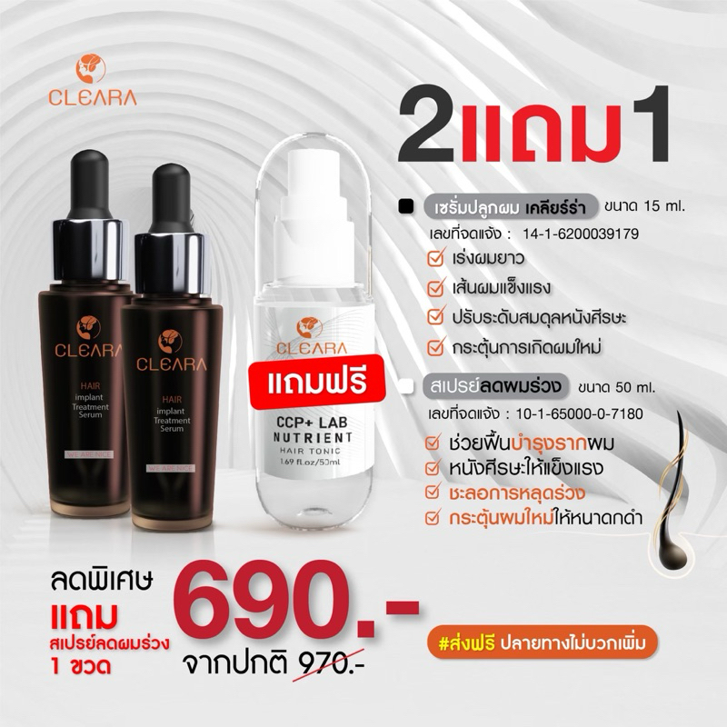 เซรั่มเคลียร่า 2ขวด แถม สเปรย์ลดผมร่วง