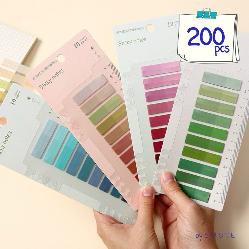 < พร้อมส่ง> โน๊ตกาวแถบV.2 โทนสี PET ( 200 แผ่น ) Sticky Note กันน้ำ โพอิท โน๊ต เครื่องเขียน
