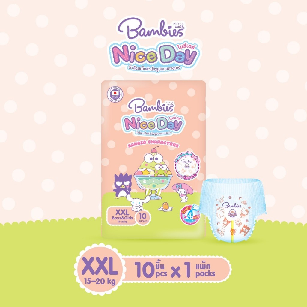Bambies รุ่นใหม่ Niceday ห่อเล็ก แบบกางเกง ลายลิขสิทธิ์ Sanrio น่ารัก