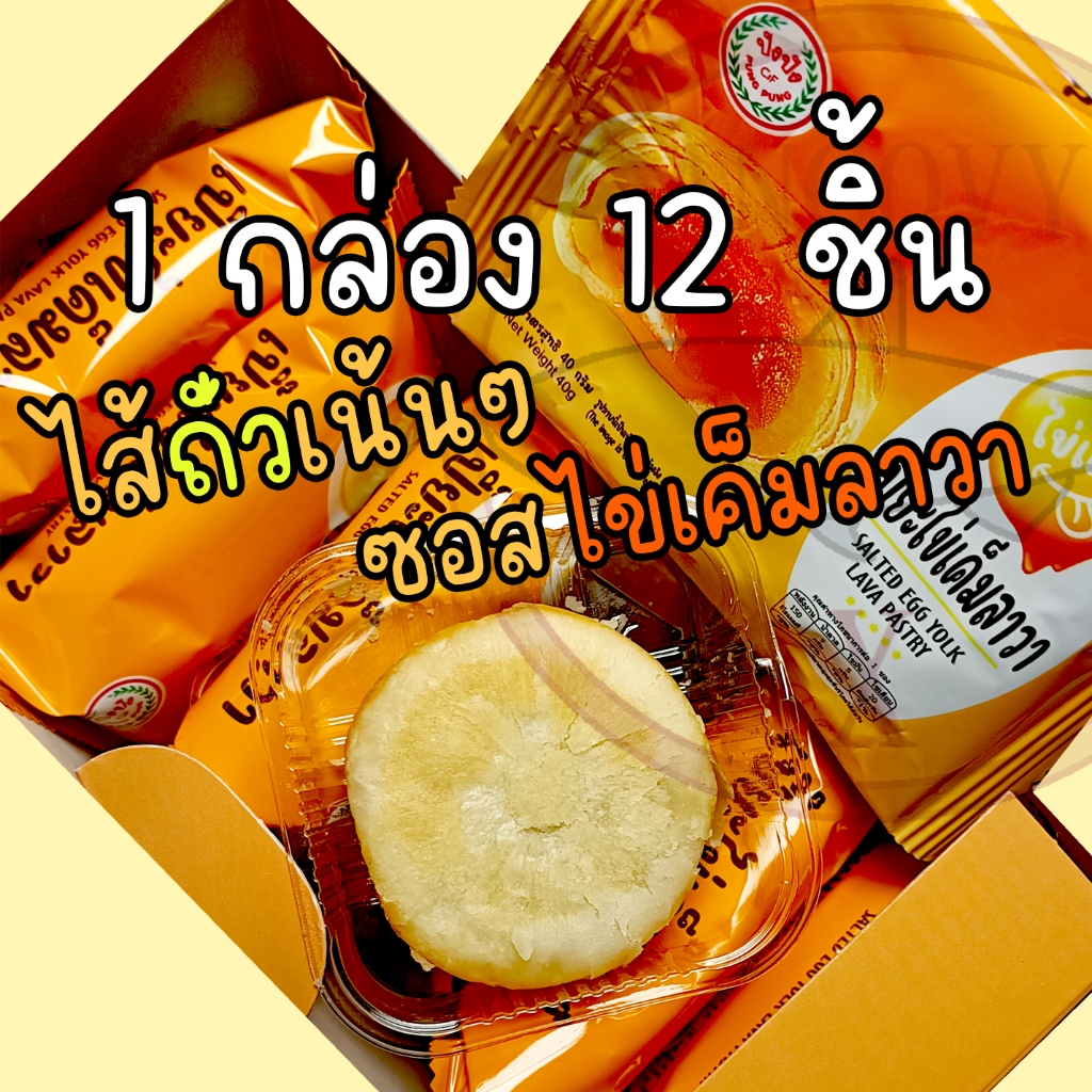 เปี๊ยะไข่เค็มลาวา ปังปัง 40 กรัม 1 กล่อง มี 12 ชิ้น ชิ้นใหญ่ ไส้แน่น อร่อย
