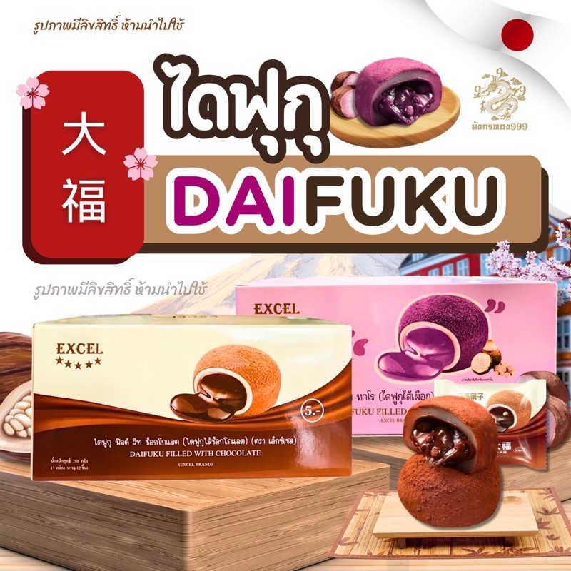 ไดฟูกุ ตราเอ็กซ์เซล & ฟูกุ ตรา Kelly แป้งนิ่ม อร่อยมากก 1 กล่อง มี 12 ชิ้น