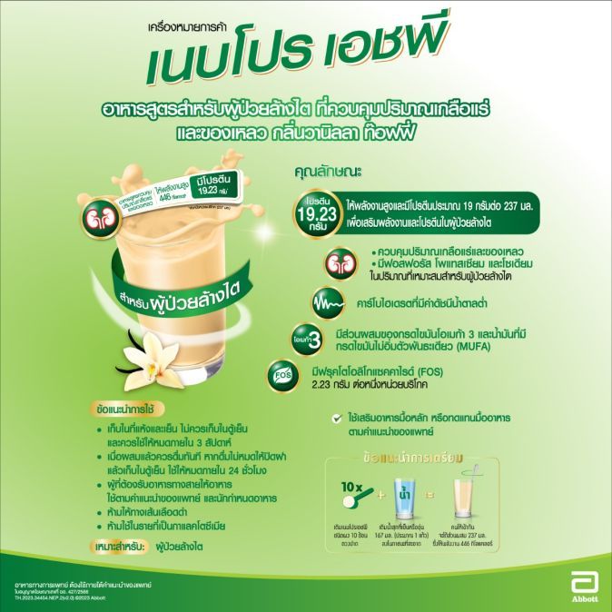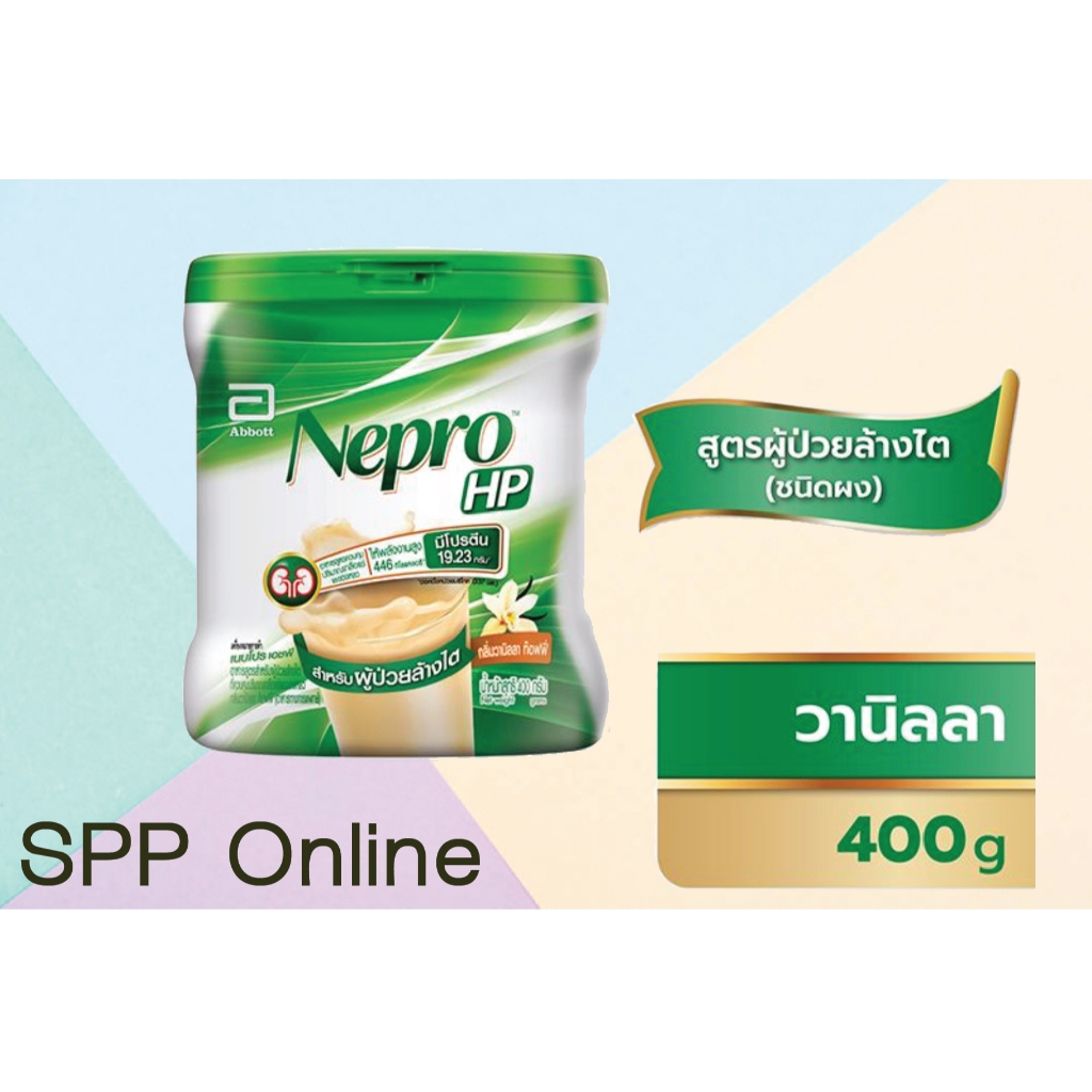 NEPRO HP 400g เนบโปร เอชพี ชนิดผง กลิ่นวานิลลา ขนาด 400 กรัม สำหรับผู้ป่วยล้างไต EXP 10/2026