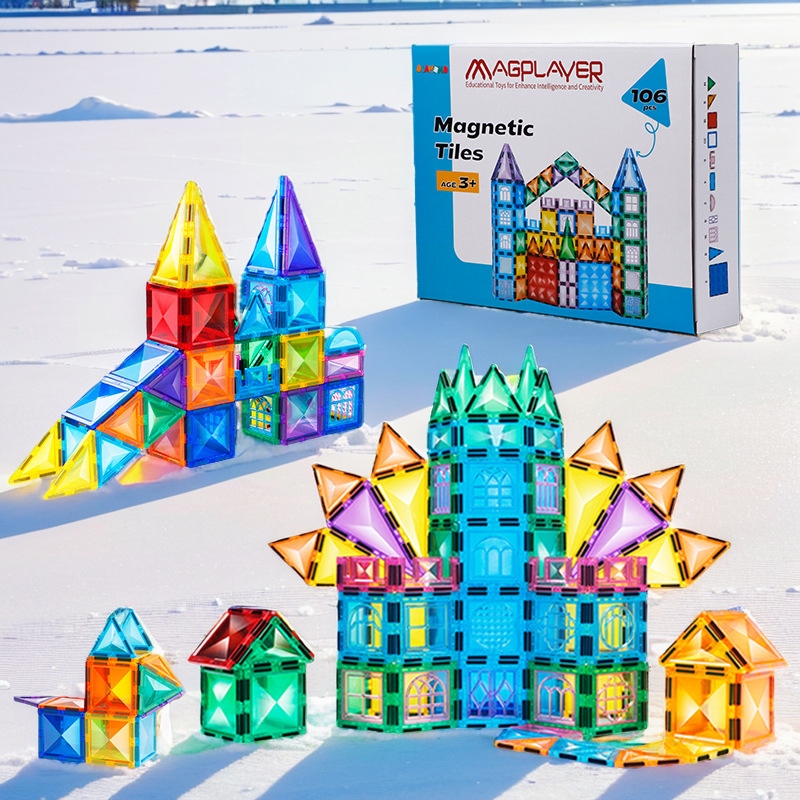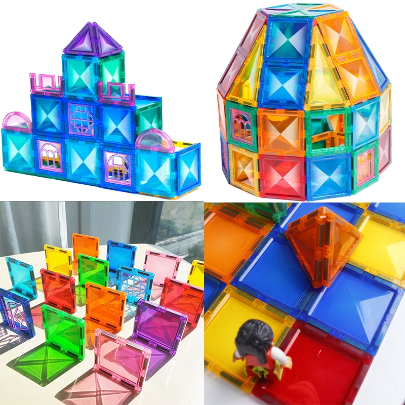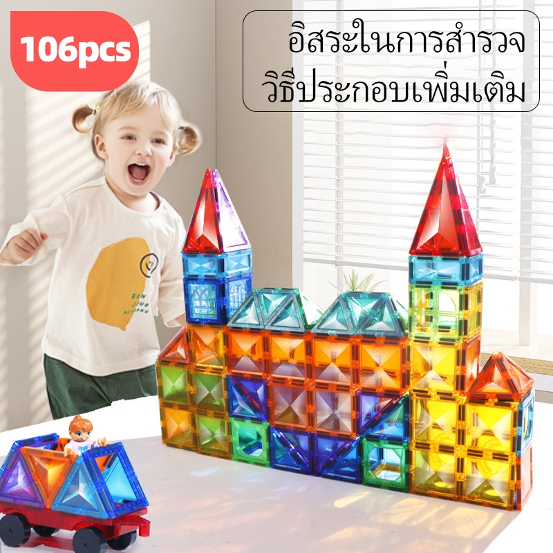 ⚡รุ่นขยาย7.5ซม⚡Magnet Tiles Dazzling Diamond DIY Puzzle STEAM ของเล่นแผ่นตัวต่อแม่เหล็ก 50/106 ชิ้น