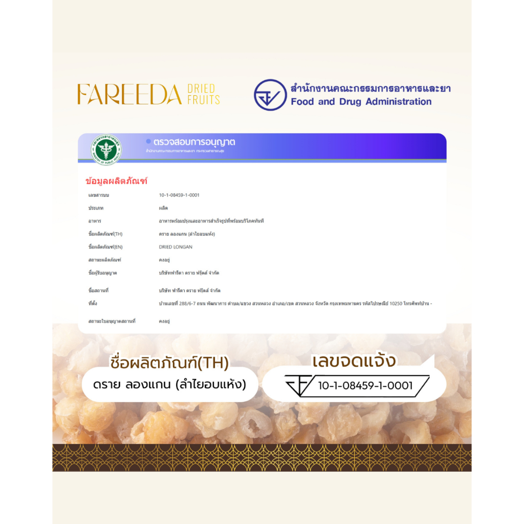 ลำไยอบแห้ง Fareeda เนื้อหนึบ รสหวาน หอมหวานกลิ่นลำไย