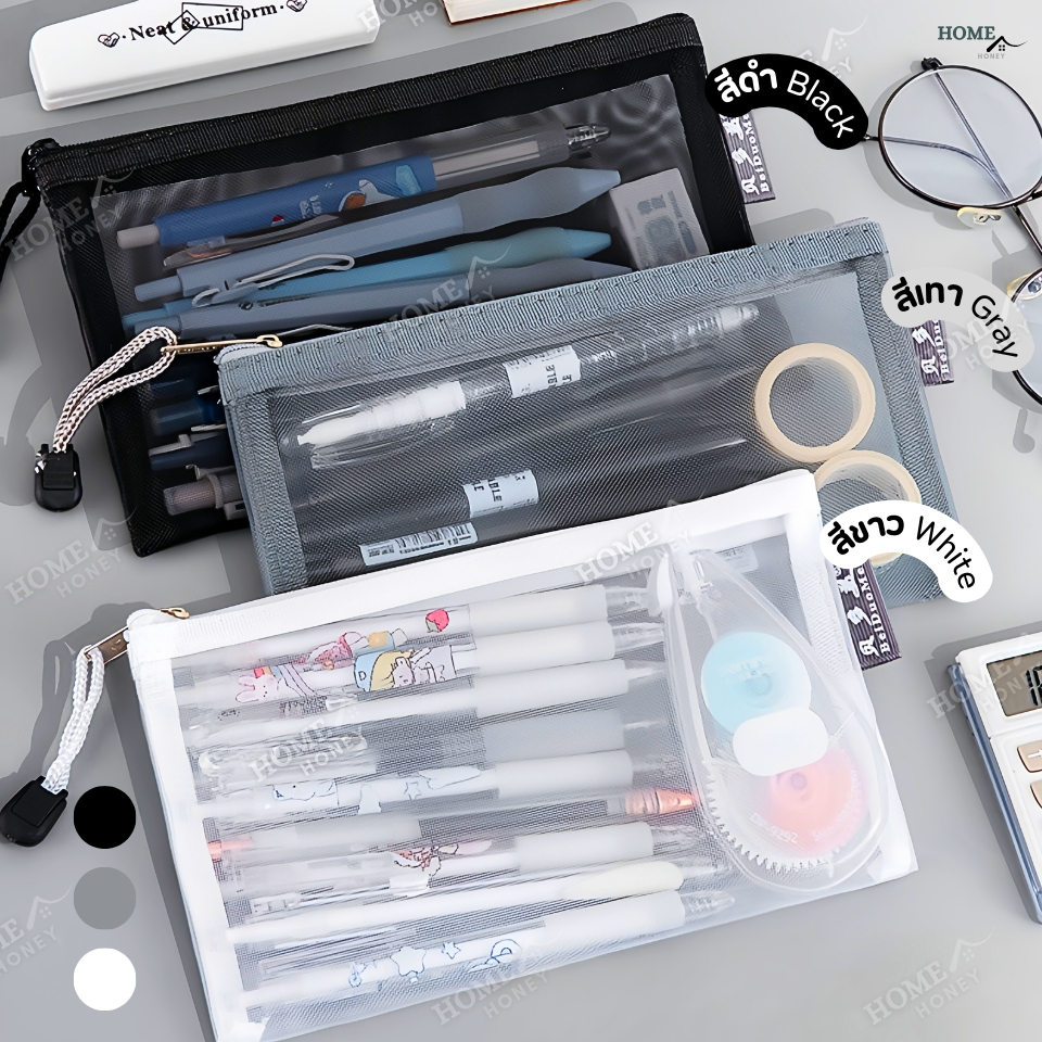 กระเป๋าตาข่ายมินิมอล(ขนาดใหญ่แต่งซิป)จุของได้เยอะ กระเป๋าใส่ของ กระเป๋าดินสอ กระเป๋าเครื่องสำอาง สำนักงาน โรงเรียน