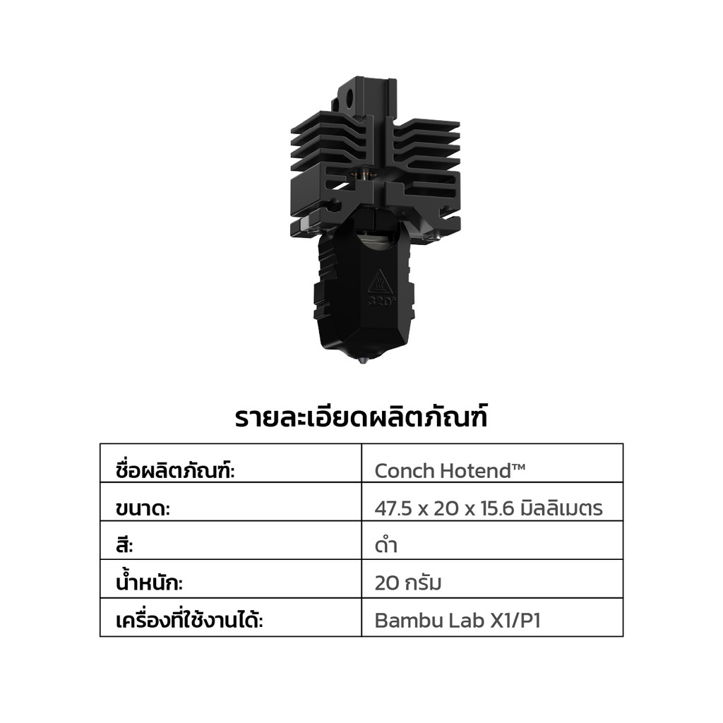 หัวฉีด Phaetus Conch Hotend ชุบแข็ง หัวเปล่า สำหรับ Bambu Lab P1 และ X1 หัวฉีดทนทาน คุ้มค่า ใช้งานได้นาน