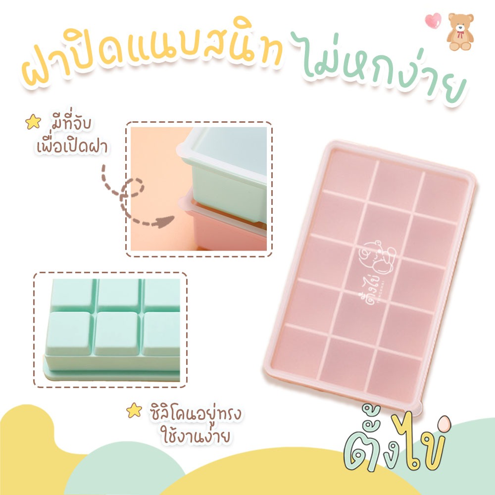 [ตั้งไข่] บล็อคซิลิโคนเก็บอาหารเด็ก ถาดซิลิโคนแช่แข็งอาหารเด็ก ถาดซิลิโคนพร้อมฝาปิด 15 ช่อง ถาดน้ำแข็ง