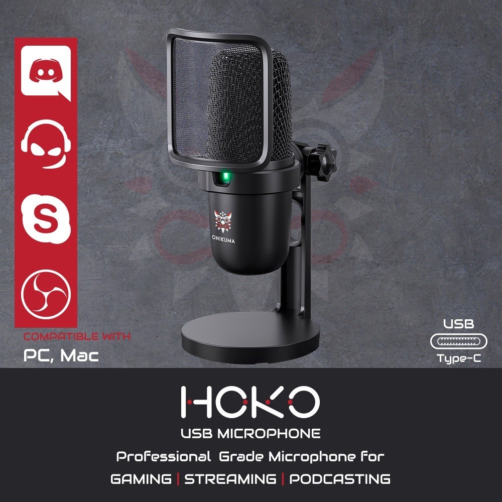 Onikuma Hoko USB Microphone ไมโครโฟนตั้งโต๊ะ ไมค์สตรีมมิ่ง เกมมิ่ง พอดแคสต์ ตัดเสียงรบกวนไมค์คอมพิวเตอร์ PC/Laptop