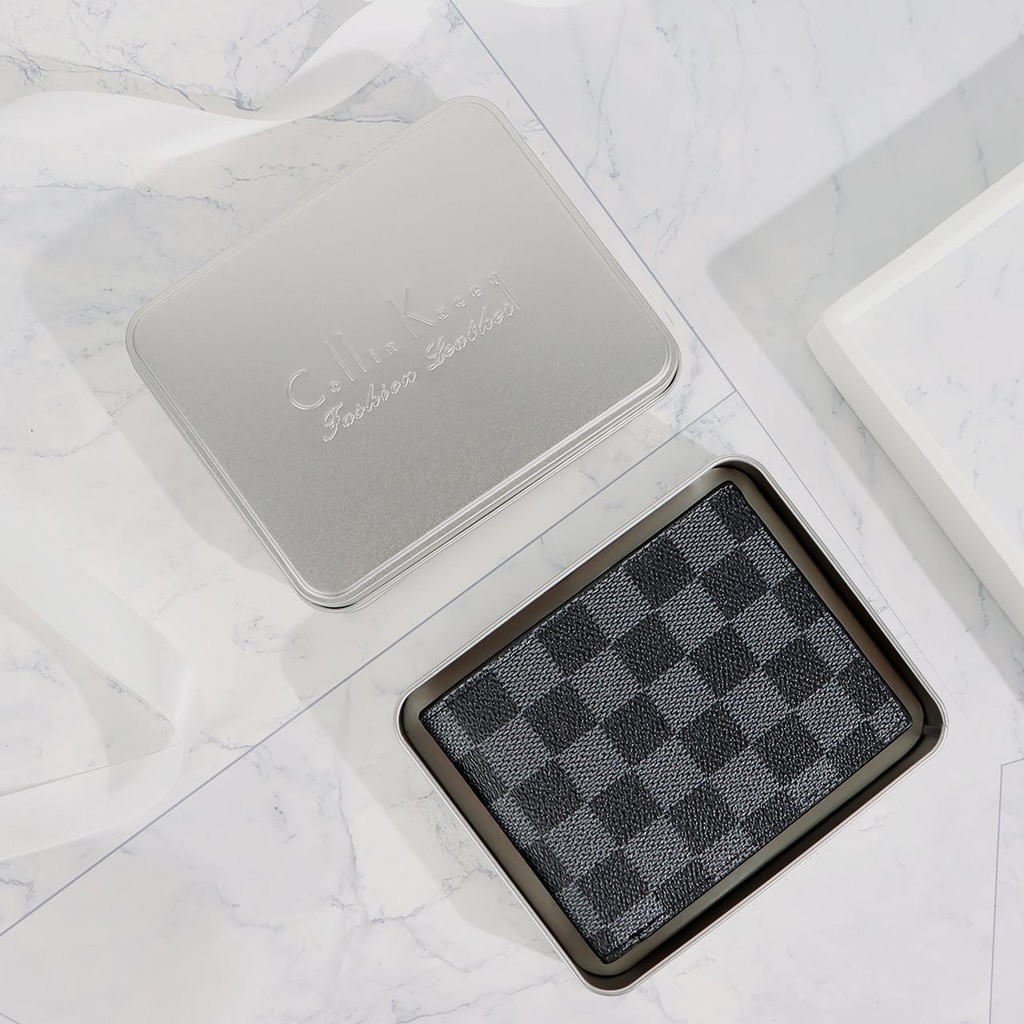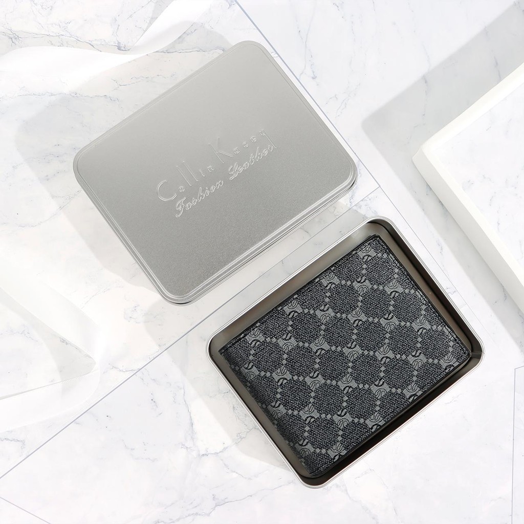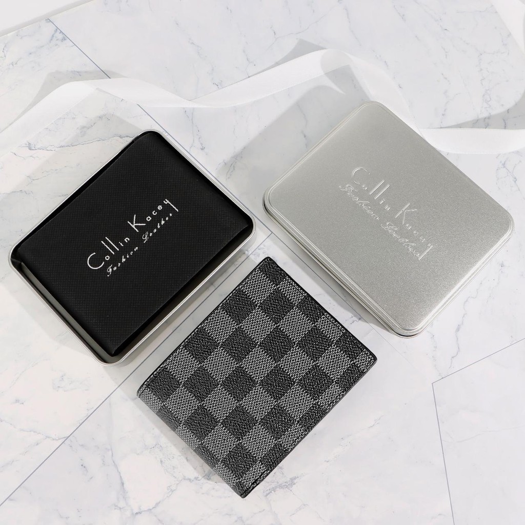 GD1 กระเป๋าสตางค์ลายสก็อตสำหรับผู้ชายรุ่นใหม่ล่าสุด และมีสไตล์กระเป๋าสตางค์ผู้ชาย แถมฟรีกล่องเหล็ก