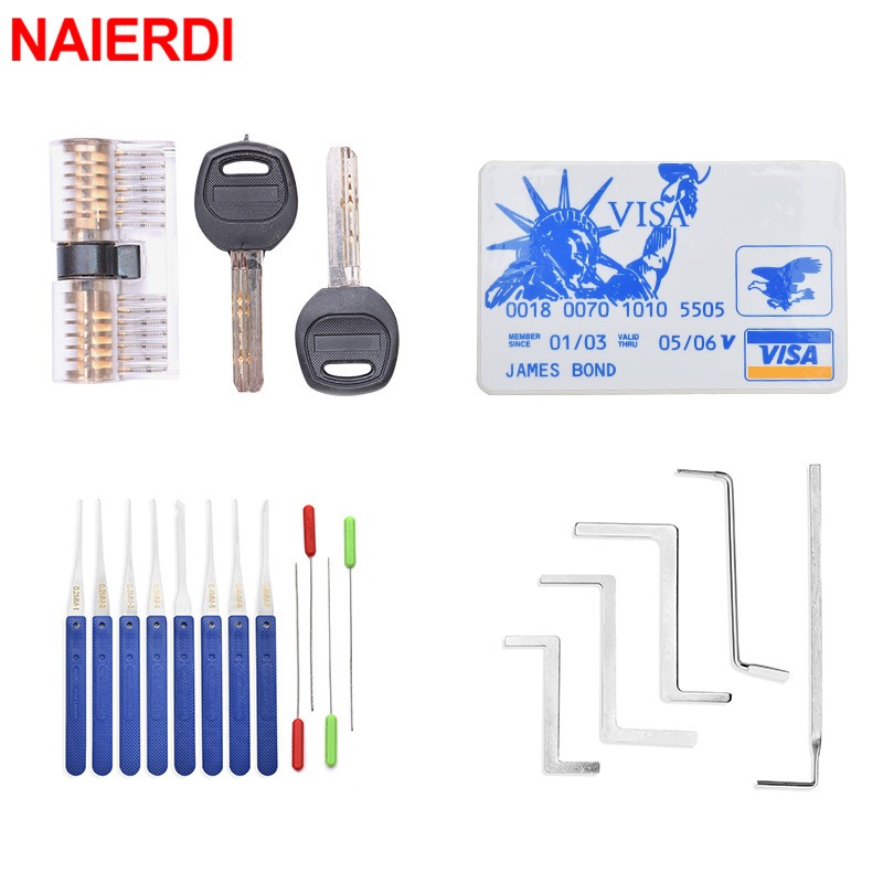 Naierdi เครื่องมือช่างกุญแจ Lock Pick Set Broken Key Extractor พร้อมล็อคโปร่งใสฝึกกุญแจผสม