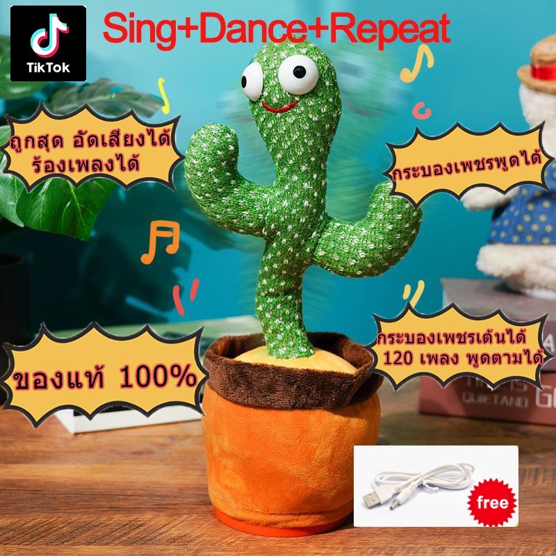 🏆Flash Sale🏆 น้องบอง USB ชาร์จได้ กระบองเพชรเต้นได้ 120 เพลง พูดตามได้ อัดเสียงได้ ร้องเพลงได้