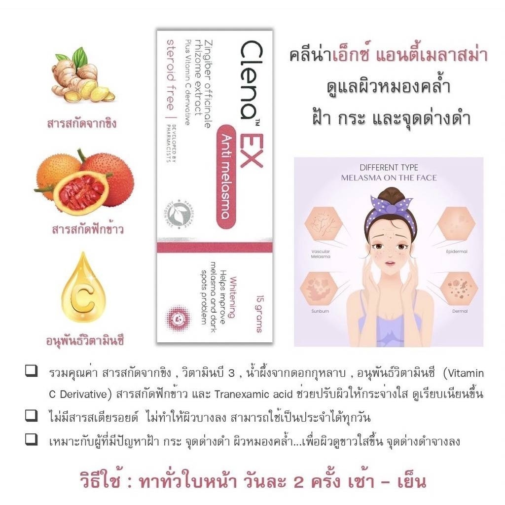 ครีมทาฝ้า Clena Ex 15 g. คลีนา เอ็กซ์
